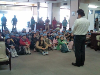 あっという間の4日間でした。閉園式の後、センターの玄関前で記念撮影を行いました。(午後1時10分センター出発)