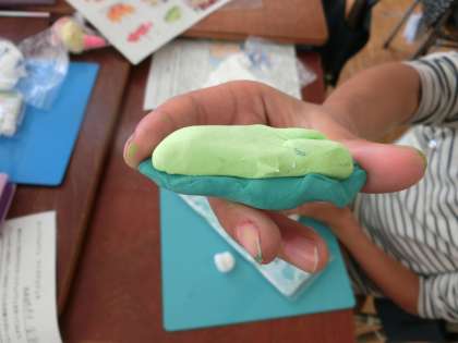 絵の具を混ぜて、こねこね・・・