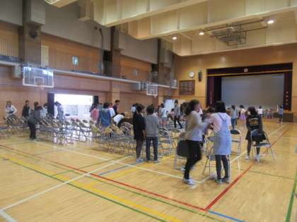 6年生が意欲的に体育館清掃・椅子だしなどをしてくれました。