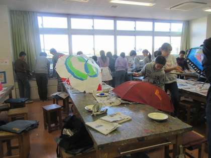 111個の傘が体育館中に広がると、時間を忘れて見入ってしまいます。