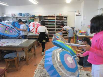 久しぶりに広げた傘は、所々に塗り落ちてしまったところがあり、そこをもう一度丁寧に塗り直しました。