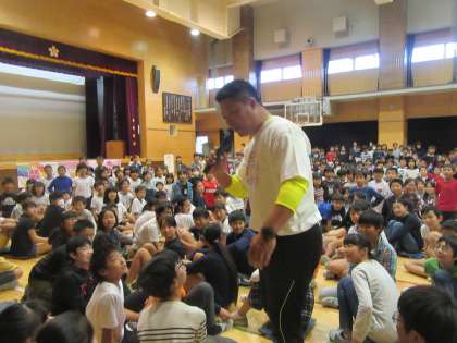 先日、プロ野球で活躍された村田修一さんが桜小学校にご講演と交流に来てくださいました。