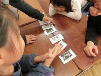 友達とじゃんけんをして勝ったらほしい動物カードを英語で言い、