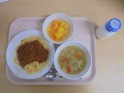 スパゲッティミートソース 牛乳 コンソメスープ フルーツポンチ