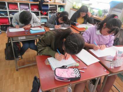 卒業文集を完成させるためにどのクラスも頑張っています。