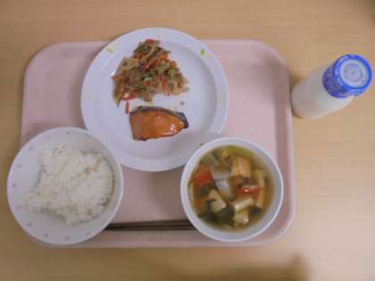 ごはん 牛乳 鮭の照り焼き きんぴらごぼう のっぺい汁