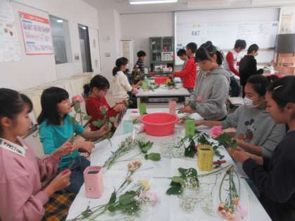 これまでお世話になった人たちのことを考えて、感謝の気持ちを生け花に込めました。