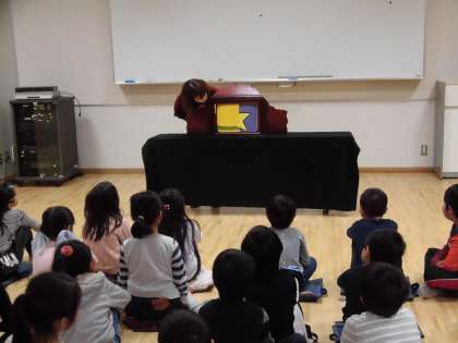 拡大絵本やエプロンシアター、紙しばいや手遊び歌など様々な形でお話を披露してくださり、子どもたちは思いっきり笑ったり、一緒に歌って手遊びをしたり