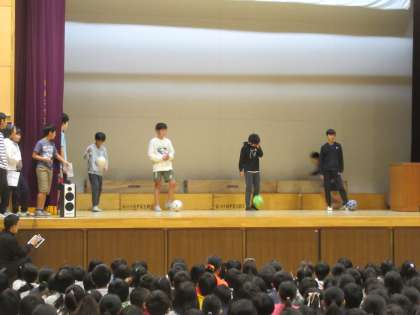 一輪車が得意な子、サッカーのリフティングが上手な子、バトミントンのラリーを続けられる子、などたくさんの子たちが舞台に上がりました。