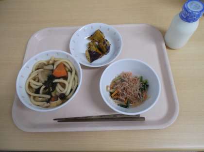 にこみうどん 牛乳 やさいのおかかかけ だいがくいも