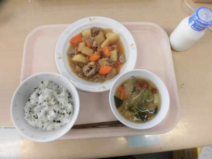 わかめとじゃこのごはん・肉じゃが・なめこの味噌汁