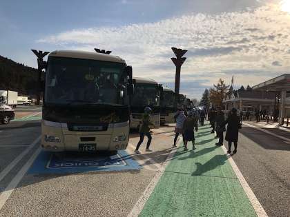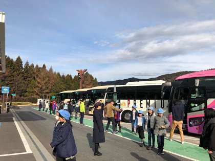 順調に嬬恋高原に向けてバスは走っています。 横川サービスエリアに予定より早く到着しました。 午前9時40分から9時55分の休憩でした。