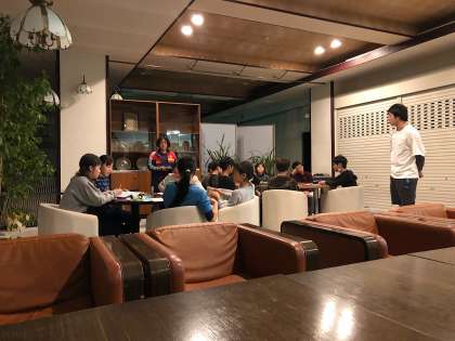 21時より1階ロビーにて班長会議が開かれました。 異学年の班をまとめるのは容易ではないようで、4年生が〇〇。といった苦労の声があがっていました。 今夜の消灯時間は21時30分です。今日はみんな、かなり疲れた様子です。このあと、すぐに眠ることでしょう。本日のホームページのアップは以上とします。明日の朝、再開しますのでよろしくお願いいたします。