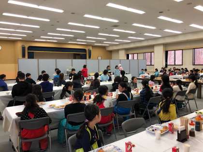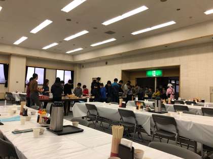 ただいま朝食を終えたところです。ぶどうゼリーのじゃんけん大会があり、大いに盛り上がりました。これからスキー準備です。