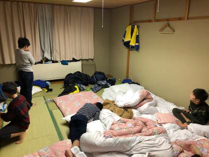 おはようございます。ウインタースクール3日目の朝です。 風は大風です。 かぜが強いせいか、雪は多くは積もっていません。これから朝食ですが、今日のスキーのコンディションは良いものではありません。スキー学校の先生にゲレンデの状態を確認します。 昨日、高熱の二人の児童はお迎えに来てもらい帰りました。体調の悪い児童はおりますが、その状態は今のところ良好です。体調に異変のある児童の保護者には連絡済みです。
