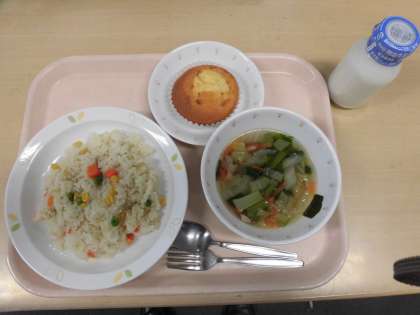 三食ピラフ 白菜のスープ りんごケーキ
