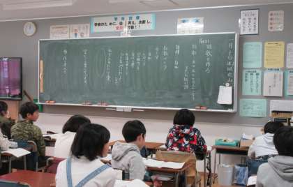 学習の流れは、自分で短歌をいくつか作り、最後に短歌発表会をしていきます。