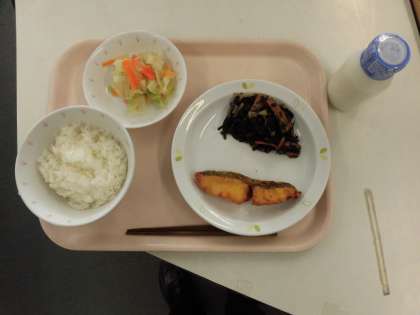 魚のカレーあげ ひじきの煮付け 野菜の柚子風味かけ
