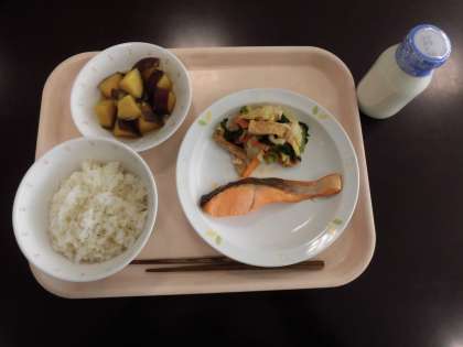 鮭の塩焼き 油揚げのひびたし さくまいものふくめに