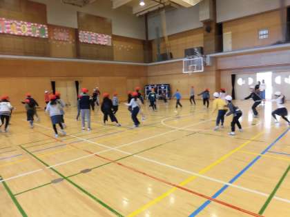 1年生から6年生がグループに分かれて一緒に遊びます。