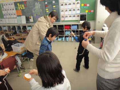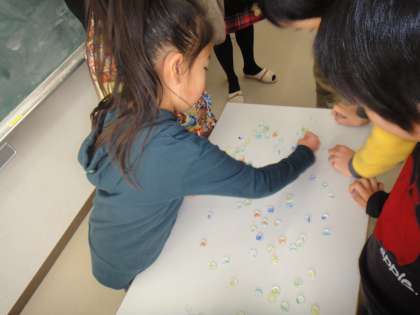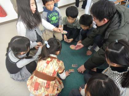 遊ぶものは、けん玉、メンコ、おはじき、コマ、あやとりです。