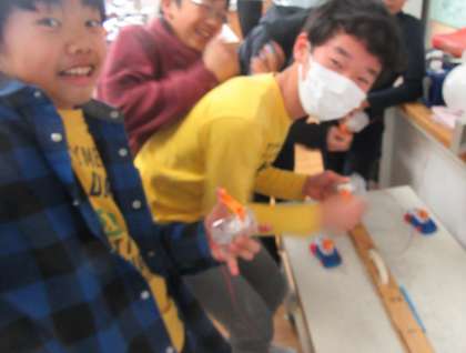 その発電した電気の力を利用して、備え付けの車を動かしていきます。