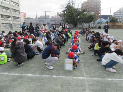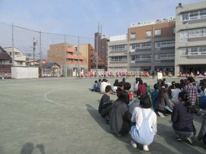 歩きそうになっても走ろうとする1年生を応援する6年生でした。