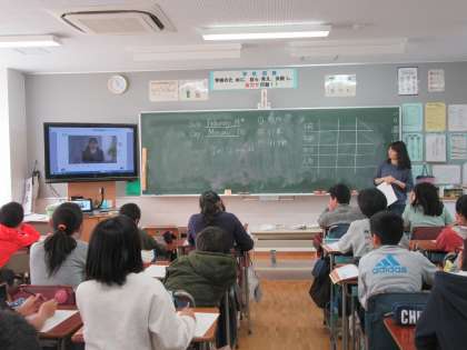まず授業の様子では、生徒たちが英語で話し合う姿が見られ、子どもたちは驚いていました。