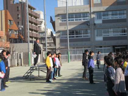 全校朝会の校長先生のお話では、遊びながら英語を学ぶことができる施設を紹介していただきました。