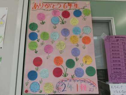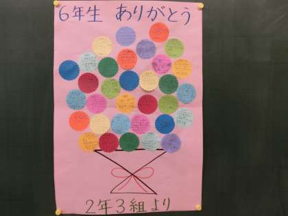 もうすぐ卒業する6年生に感謝の気持ちを伝えるためにメッセージを書きました。