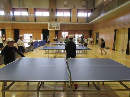 体育館では、卓球対決。