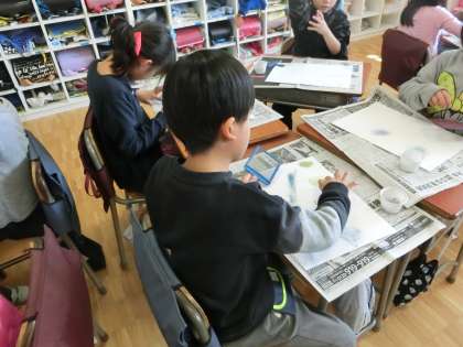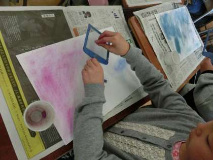 コンテを網の上でこすって、出てきた粉を指やティッシュでぼかします。