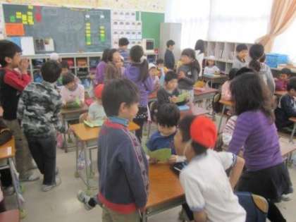 1年生に招待状を作り、渡しに行きました。1年生にどんな言葉をかけて渡そうか、ドキドキしながら考えました。渡し終えた後は、うれしそうな顔で「緊張したよ。」と口々に言っていました。