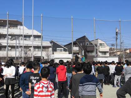 今朝は今年度最後の全校朝会がありました。