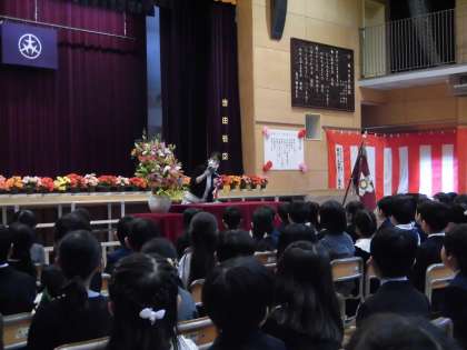 入学式では、緊張しながらもしっかりと話を聞き、6年生や2年生の出し物を楽しんでいました。