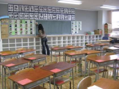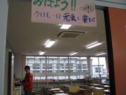 机やイスが運ばれると、だんだん教室らしくなってきます。