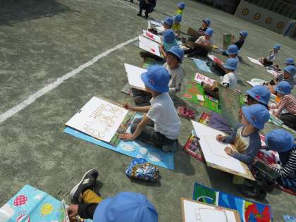 思い思いの場所にレジャーシートを敷いて描いていました。