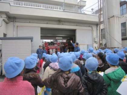 社会の学習で消防署見学に行ってきました。消防車の装備や、通報から出動の流れなどを見学させていただきました。消防隊員に階級があることや、救助の際の工夫について発見し、また、救助隊員の方の心構えや喜びについてお話を聞くことができ大変有意義な見学となりました。