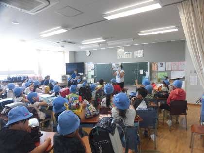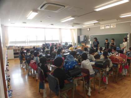 今日は、地区班活動がありました。登下校を安全に行うため、地区班の班長が安全な登下校を説明しました。その後、校外委員の保護者の方にお手伝いいただき、教員が交通安全について解説しました。今後も桜の子どもたちが安全に通学できますように。
