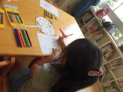 土曜日にさくらっ子体験教室がありました。さくらっ子体験教室は、桜小保護者のOBによる体験教室です。今回は、認定NPO法人の方に講師となっていただきました。パソコンで絵を描き、うちわの形に切って、裏面に色を塗って完成です。最近暑いので、もう手作りうちわが活躍しそうですね。