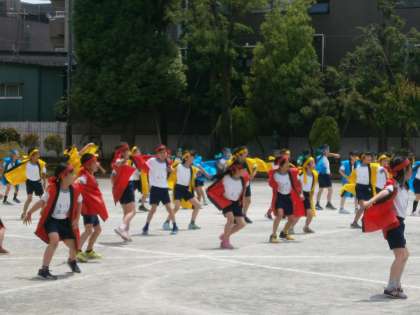 3年生の様子です。衣装を着ると、自然に笑みがこぼれます。とても楽しそうに踊っていました。