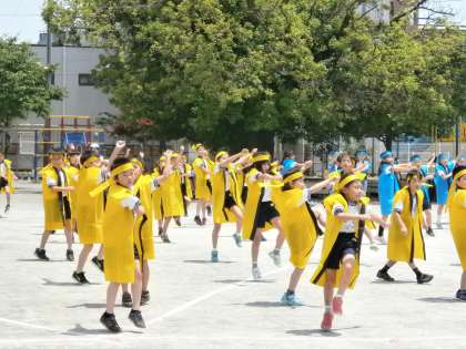 昨日のお天気とはうって変って今日は快晴です。子どもたちも大喜びで練習にも気合が入ります。