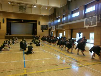 毎日毎日「どっこいしょ どっこいしょ!」と威勢のいいかけ声が聞こえてきます。今日は友達の演技を見て学んだり、グループに分かれて練習したりしています。さすが高学年ですね。