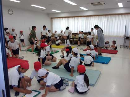 木曜日に体力テストが行われました。さまざまな測定をするので、1年生は、6年生といっしょに回ります。回数もしっかりと6年生に数えてもらいます。安心ですね。