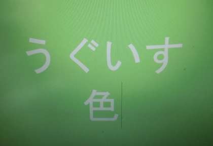 (黄緑色の紙を見せる)この色も、黄緑色の他に別の表現があります。分かる人はいますか。そうです。若草色や鶯(うぐいす)色、山葵(わさび)色など、美しい表現があります。