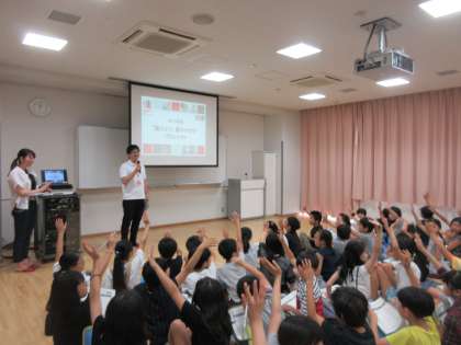 5年生の総合的な学習の時間に、ゲストティーチャーとしてユニクロの方に来ていただきました。