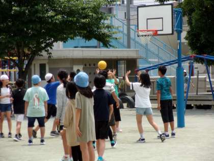 到着の後は早速6年生と遊びます。すぐに打ち解けて、楽しい遊びになりました。さすが、どちらも6年生です。