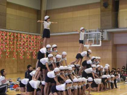 5年生は、6年生へのメッセージとともに、一緒にやり遂げた組体操「全員ピラミッド」、そして感謝の気持ちをこめて「ありがとう」のリコーダー演奏をしました。