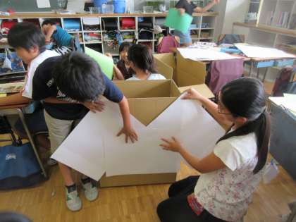 難民について学習を深めた5年生。いよいよ来週の洋服回収に向けて、各担当に分かれ、準備を進めました。