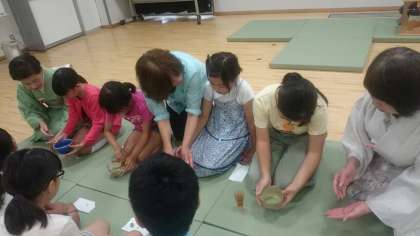さあ、それでは、お茶をたてます。一生懸命茶筅で混ぜて、混ぜて・・。